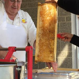 Faloppa harvested about 65 pounds of honey, now available in jars for GM employees in exchange for a suggested donation of $10, which will then go the Warming Center.