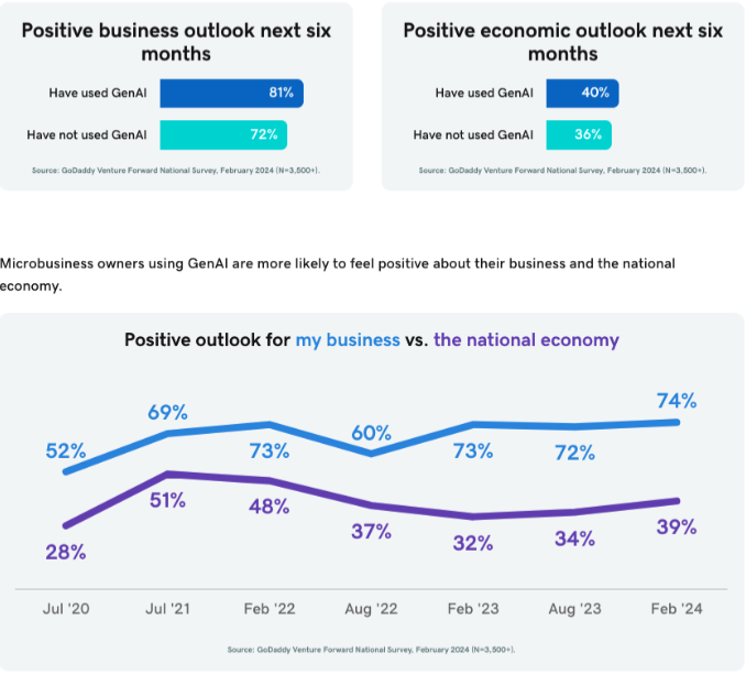 - The more ambitious the microbusiness owner is, the more likely they are using GenAI. Solo entrepreneurs are the most likely.