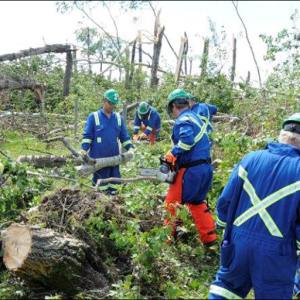 After conferring with community leaders – and under the direction of Long Plain Fire Chief Randy Merrick and his team – TransCanada’s Aboriginal Liaison Steve Loney dispatched a clean-up crew to clear a farmer’s fence of fallen trees so that the farmer could repair the fence and keep his livestock contained.