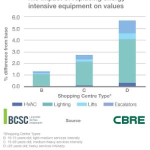 - Failure to invest in sustainable features decreases shopping centre values in the UK. It’s most defined for older shopping centres (those over 25 years) with up to and over 5% value gains to be made. For relatively modern centres (less than 5 years old), 1% value gains are still achievable
