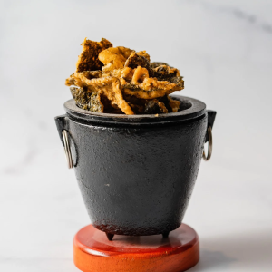 - Crispy Salmon Skin Chicharrones
