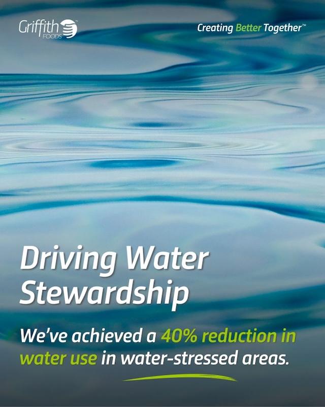Griffith Foods: Driving Water Stewardship. We've achieved a 40% reduction in water use in water-stressed areas.