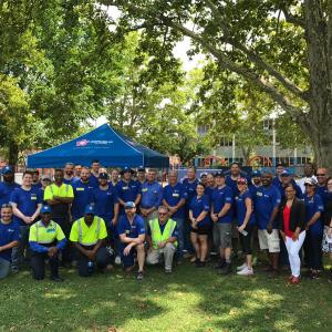 Fifty volunteers from Republic Services joined Sharswood community members and Habitat staff to tackle a variety of projects to support the neighborhood. Volunteers helped make updates and repairs to the Sharswood Athletic Recreation Center and helped the Habitat staff on home repair projects for residents. Republic Services also provided dumpsters and offered curbside pickup to support general street clean-up and maintenance, as well as helping Sharswood neighbors who wanted to clear items out of their homes.