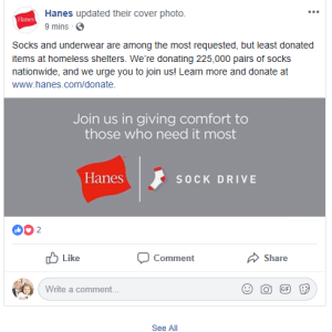 That is why America’s No. 1 basic apparel, underwear and sock brand is donating 225,000 pairs of socks to organizations fighting homelessness across the United States in its ninth year of sponsoring the Hanes National Sock Drive. Hanes is continuing to partner with national agencies, including The Salvation Army, Invisible People and Covenant House, while increasing the local impact of the program by engaging directly with at least one agency in every state to distribute the apparel. Since the program’s inception in 2009, Hanes has provided more than 2.5 million pairs of socks – the most requested item by relief agencies – to help the homeless.