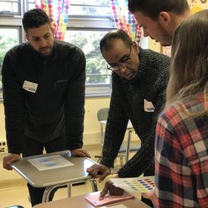 Local teachers and parents had the opportunity to apply computational thinking during the Day of Discovery and Community Night at Marshall Math Science Academy. Seventy-five teachers from across Harrisburg schools experienced a full day of professional development in computational thinking strategies for their classrooms. In the evening, families engaged in hands-on learning experiences with DE educational experts.