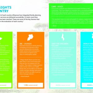 To better understand what drives the effectiveness of this integrated care model, we worked with our partners and the London School of Hygiene and Tropical Medicine to evaluate the pilot programs and are encouraged by the high-level insights from the study, which found that the unique context of each country influences how integrated family planning and immunization services are delivered successfully. However, there were four overarching themes identified across all five countries that served as possible barriers or facilitators to family planning uptake and acceptance. These include: