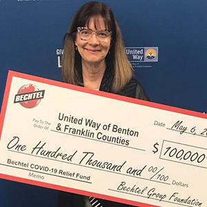 On May 6, Valerie McCain, Bechtel project director at the WTP, virtually delivered a $100,000 check from the Bechtel Group Foundation to LoAnn Ayers, CEO of the United Way of Benton and Franklin Counties.