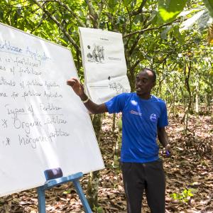 A key part of Hershey’s sustainable cocoa initiatives is its signature Hershey Learn to Grow farm training program in West Africa, where about two-thirds of the world’s cocoa is grown. During the past two years, Hershey has expanded Learn to Grow in Ghana, Nigeria and Cote d’Ivoire. Through the program, farmers receive training on good agricultural practices, appropriate social practices with a focus on labor, good environmental and business practices, and information about other food crops such as cassava and plantain.