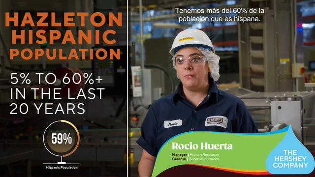 In the past 20 years, Hazleton’s population has seen a rapid growth in Hispanic residents – growing from five to more than 60 percent. Recognizing the opportunity to evolve its approach and build programs that lead with inclusivity, Hershey launched this initiative to equip employees with the tools and resources needed to succeed regardless of their primary language. ‘Say Hola’ is part of Hershey’s larger people-first manufacturing strategy and is a direct reflection of the local community’s diverse, rapidly evolving demographics.