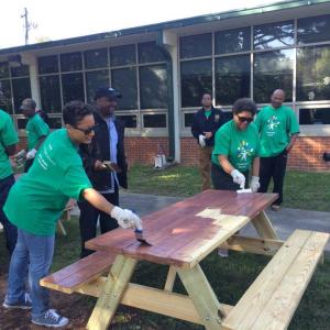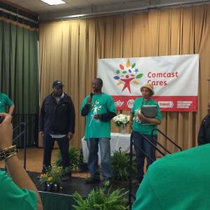 In Atlanta, DIY host James Young joined Comcast executives and volunteers from Comcast, Scripps Networks and 100 Black Men of Atlanta to create an outdoor classroom with benches, landscaping and a small container garden at West Manor Elementary School.