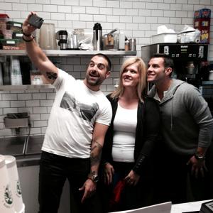 Employees lined the Food Network Kitchen as Kitchen Cousins Anthony Carrino and John Colaneri stopped by our Tennessee office for a quick tour of the building before they host the “Raise a Roof” benefit concert to raise money for Rebuilding Together Knoxville here tomorrow night.