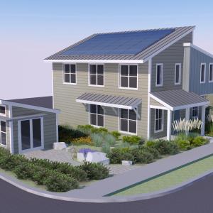 A photovoltaic (PV) system will provide the energy for the home and for daily commuting in an all-electric vehicle like the Honda Fit EV. The zero net energy home will generate, on average, more electricity from on-site renewable power sources than it will receive from its electric utility provider.