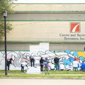 At St. John’s Bread of Life, where I met Gayla, Comcast volunteers helped pass out Thanksgiving meals to needy families, and we gave away 100 laptops to families there as well. And at the Career and Recovery Resources Center in downtown Houston, a team of Comcast employees and volunteers gathered to paint an inspiring mural on the side of the building, alongside local artist Gonzo247. The “Make Your Wake” mural he designed represents the idea of riding out whatever challenges life brings our way and emerging safely through the storms.