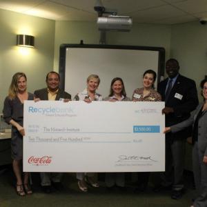 Check presentation ceremony at the school hosted by the City of Houston, Recyclebank and Coca-Cola. Representatives presented The Monarch School with a $2,500 check for their participation in the Recyclebank Green Schools program.