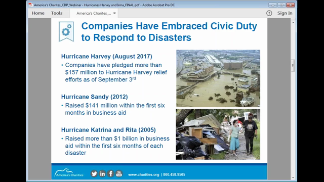 Watch Now! This 20-minute webinar recording features Jim Starr, President and CEO of America's Charities, and Bob Ottenhoff, President and CEO of the Center for Disaster Philanthropy, and explains: