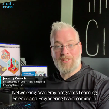 Jeremy Creech describes himself as a Servant Leader for the Networking Academy’s Learning Engineering team. As a child he dreamed of becoming an FBI agent or technical diver, but he ended up having a bigger impact on people’s lives pursuing the confluence of technology, education, and business.