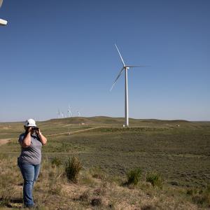 Penny Macormic starts her day early. At 6 a.m. on this day in June, Glenrock, Wyoming, is cool and quiet enough to hear the meadowlarks chirp and whistle on the ranchlands. She’s an eagle observation specialist at Duke Energy Sustainable Solutions’ Top of the World Windpower Project.