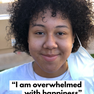 “My cheeks are hurting because I am smiling so hard under my mask."