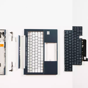 Today, Wolff and his team are in their recently outfitted studio, which opened late last year in HP’s Palo Alto headquarters. In the common areas, there is an inviting atmosphere of warm wood and soft, textured surfaces. Designers are tapping away at their keyboards, breaking off to share quick sketches and notes in an informal huddle around a digital whiteboard. In the gallery — an airy space that looks a lot like an upscale retail store — foam models, proof-of concept designs, and an array of laptop parts, keycaps, speakers, and circuit boards are splayed out on stark white countertops. Light from the courtyard pours in from the floor-to-ceiling windows.