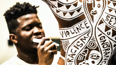 I now draw inspiration from Trayvon Martin, Jordan Davis, and others who look like me and the ways our stories intertwine. I take all of this and translate it into a visual language I call Afromysterics in which anything from sneakers, walls, cars, become my canvas to share these stories.