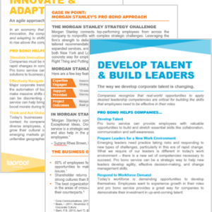 That’s why Taproot has developed a new resource for the field that outlines six common business objectives that pro bono can help support. In addition to the social impact that pro bono can help drive, companies have a lot to gain from engaging their employees in pro bono initiatives.