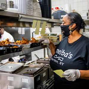 The Internet, in part, has helped Melba’s business start to bounce back in the aftermath of New York City mandating that restaurants close their on-site dining areas in mid-March. She has stepped up her use of social media to keep the public informed, partnered with Team Unity Incorporated to create a COVID-19 relief fund for Melba’s employees, and made it a priority to stay connected to her Harlem community and fellow restaurateurs throughout the city. This has given Melba a source of support and an outlet to give back through programs that have fed laid off restaurant staff and frontline workers at Harlem Hospital, Mount Sinai Hospital, and Bronx Lebanon Hospital, among others.