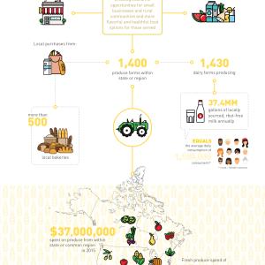 Buying from SMEs is often better for our customers, too. Buying from small, local farmers allows us to serve customers fresher, healthier food. Across North America, more than 1,400 small farms provide local, seasonal produce to nearby Sodexo sites, and more than 1,437 small dairy farms provide 37.4 million gallons of locally sourced, rbst-free milk.