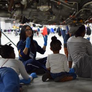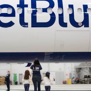 A video about the event shows a technician checking an engine, a pilot getting the cockpit ready for flight, determined girls sitting in the captain’s seat to try out the controls, and interviews with women who work at JetBlue as technicians and pilots. As the scenes flash by, JetBlue’s Director of Corporate Social Responsibility (CSR) Icema Gibbs notes that girls don’t often see themselves in those jobs because they are usually occupied by men. “This gives girls an opportunity to see themselves in people actually doing these roles,” Gibbs says.