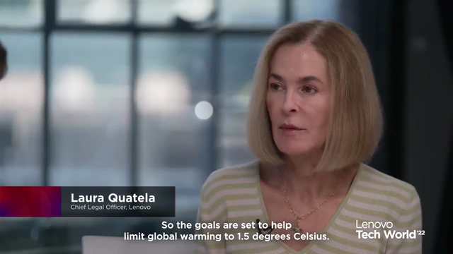 Aligning to SBTi’s science-based approach helps with the goals to keep global warming to 1.5C – a key threshold that – if crossed- will expose the world to the worst effects of climate change. The first step for a company to establish a net-zero target is to have short-term targets focusing on 2030 that are the first step toward reaching net-zero by 2050. Lenovo’s 2030 targets include reducing scope 1 and 2 emissions (associated with our own operations) by 50% and reducing emissions intensity in key areas of the value chain (products, suppliers and transportation) by 25%. Lenovo’s innovation is critical to reaching its targets, and the company has set 2030 goals to increase energy efficiency for notebooks and smartphones by 30% and desktops and servers by 50%.