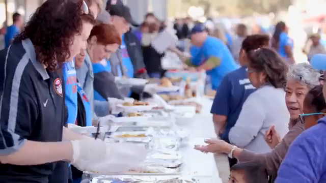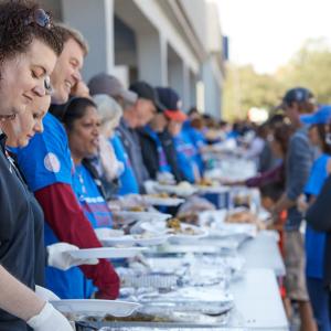 With the aroma of turkey, ham and all the fixings in the air, and music playing in the background, volunteers served a holiday meal for more than 1,000 people affected by Hurricane Harvey at Celebration of Life Church in Baytown, Texas.
