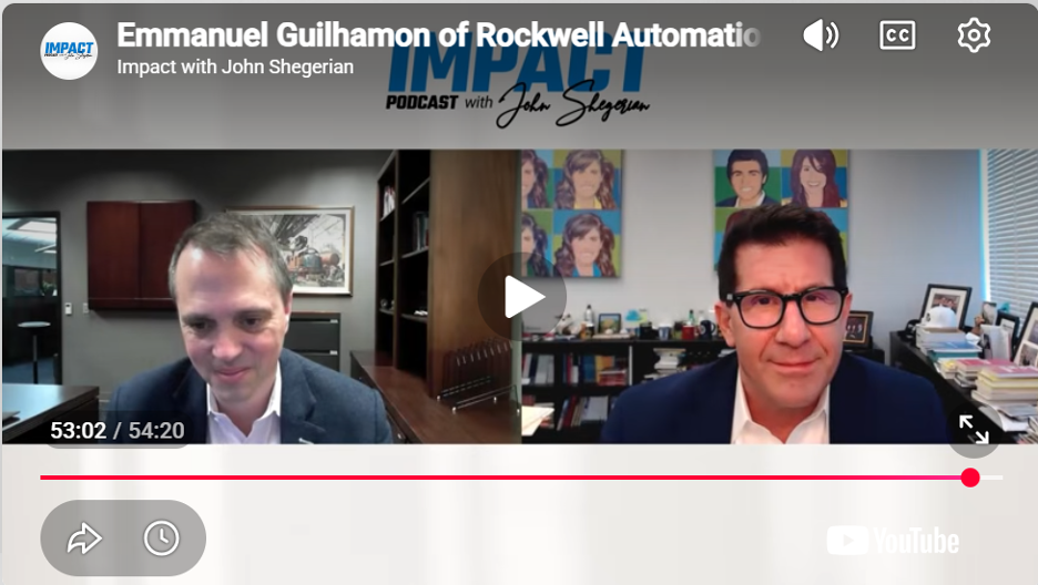 Emmanuel Guilhamon, vice president, Sustainability, Rockwell Automation is a featured guest this week on the Impact Podcast with John Shegerian. The podcast has featured over 2,000 guests who all share in common a passion for making our world a better place on a daily basis.