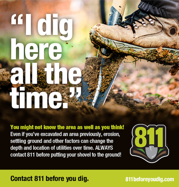 “Underground power lines and natural gas systems are often buried close to the surface, plus buried objects shift over time,” said Brian Clark, vice president, Gas Operations. “You might be surprised to learn that you need to call us before planting something small, like a bush or tree, but it’s worth it to be safe. Striking a natural gas pipeline is extremely dangerous and we want you, our customers, to remain safe.”