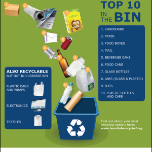 To help answer the question – “What can I recycle?” – three national organizations that focus on recycling – Keep America Beautiful (KAB), the National Waste & Recycling Association (NW&RA) and the Solid Waste Association of North America (SWANA) – as well as the United States Environmental Protection Agency (EPA), have joined together on an initiative to help make recycling requirements clearer and easier to follow. The initial effort in this program is the “Top 10 in the Bin” list of the most widely and easily recycled items in America.