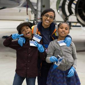 “Only 7% of pilots and 3% of aircraft maintenance technicians in the U.S. are women,” shared Rachel McCarthy, SVP Talent & Learning, as she welcomed our young guests. “But guess what? You have the ability to increase those percentages. We hope you let your imagination soar and see the possibilities that are out there waiting for you.”