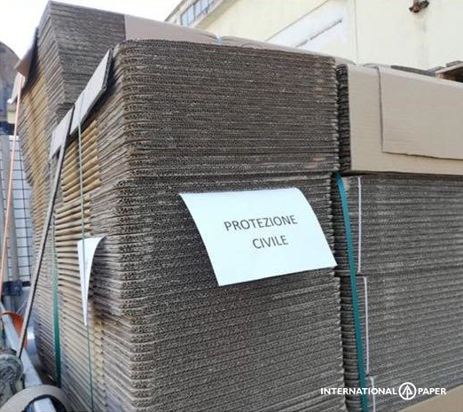 Lo stabilimento di Pomezia ha donato mezzo pallet di scatole di cartone ondulato alla Protezione Civile di Monterotondo. L'organizzazione utilizza le scatole per conservare le merci, in particolare prodotti alimentari, per le persone bisognose. International Paper ha inoltre donato 10.000 scatole di cartone ondulato alla Croce Rossa Italiana e a due ospedali per lo smaltimento di rifiuti ospedalieri.