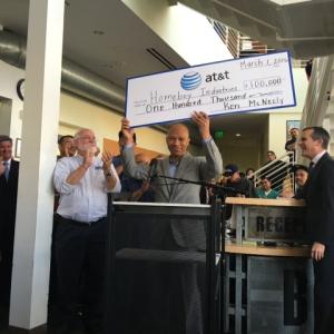 Building on our company’s commitment to education and the environment, AT&T joined Los Angeles Mayor Eric Garcetti, Father Gregory Boyle and many community leaders and supporters in making a $100,000 contribution, through AT&T Aspire, to the sustainable re-entry program. Our investment will help equip more than 100 trainees in the Homeboy program with the skills required for solar panel installation in 2016.