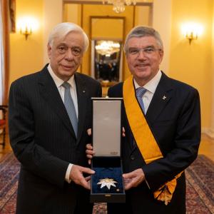 October 15, 2019 /3BL Media/ - Speaking at the ceremony, Greek President Pavlopoulos expressed his appreciation of the IOC President’s “exemplary services in favour of the values and principles of the Olympic spirit and ideals”.
