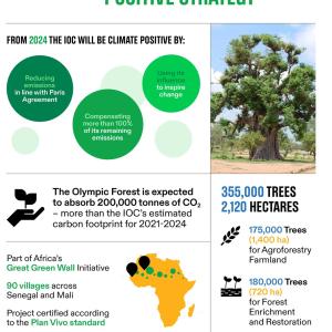 To create the Olympic Forest, the IOC will work with Tree Aid, a non-profit organisation with over 30 years’ experience working with people in the drylands of Africa to tackle poverty and the effects of the climate crisis by growing trees and restoring and protecting land.
