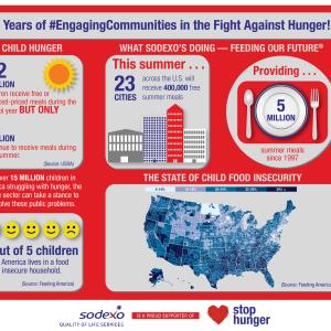 Fortunately, there are many organizations that commit time and resources to address the issue, including Share Our Strength and Feeding America as well as numerous federal and state programs. Fighting hunger, and specifically childhood hunger, is central to the Sodexo Stop Hunger Foundation mission. It’s the philanthropic arm of Sodexo where our day-to-day business ties directly to the health and well-being of children. Sodexo is fortunate enough to have a truly engaged workforce that is actively involved in the fight against hunger. We have employees that volunteer both time and expertise in their local communities, at food banks, soup kitchens, partnering with our clients and vendors in food recovery programs and much more. They also generously support the work of the Foundation financially through payroll deduction.