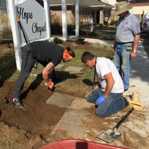 More than 40 people from Home Depot’s associate-led volunteer force joined the effort to improve the transitional home by landscaping, installing benches and creating an area for the veterans to engage in grilling and picnics.IMG_0797