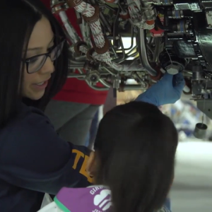 At the event, the attendees participated in sessions throughout the day which included a crewmember Q&A, an airplane engine “show and tell,” and an opportunity to board an aircraft and sit in the Captain’s seat and a meet-and-greet with women pilots and inflight crewmembers.