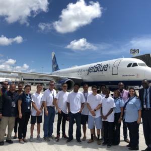 This summer, the JetBlue Foundation has partnered with the Organization of Black Aerospace Professionals (OBAP) to host seven Aviation Career Education (ACE) Academy summer camps for future aviators. Thanks to a grant from the JetBlue Foundation, OBAP was able to bring the program to additional cities this year. The camps were held in seven different locations – New York, Boston, Orlando, Fort Lauderdale, Long Beach, Puerto Rico and the Virgin Islands.