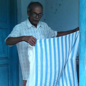 Mani-chettan has been spinning cotton and weaving thorthu for much longer than I have been alive. His more than 40 years of experience are expressed, with remarkable elegance, by each thread woven into his stunning fabrics and, less subtly so, by the numerous awards he has received for his fine craftsmanship. But over the years, Mani-chettan has watched his local weaving cooperative shrink as dwindling demand and an influx of cheap power loom products have deteriorated the financial sustainability and aspirational value of hand weaving as a profession.