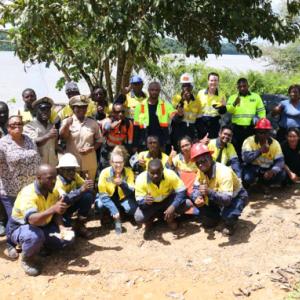Newmont’s Merian operation in Suriname is committed to building strong relationships with the local community and to supporting environmental stewardship in the region. Recently, employees and members of the local Pamaka government worked together to clean up debris and litter along the shore of the Marowijne River in Langa Tabiki village.