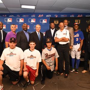 Players and officials took a moment from their Major League Baseball schedules Thursday to focus on reinvigorating youth baseball in local communities across America.