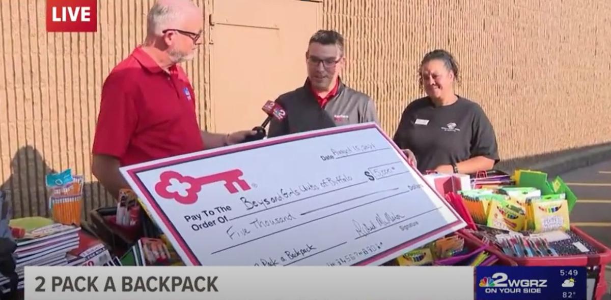 KeyBank proudly donated $5,000 to the Boys & Girls Clubs of Buffalo to support the annual 2 Pack a Backpack school supply drive on WGRZ-TV. This effort helps families in need across Western New York purchase all the essential supplies needed for their children to start the school year.