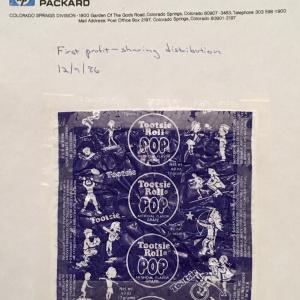The second item is from 4 months into my tenure. It relates to profit sharing and has both humorous and serious aspects. At that time employees became eligible for profit sharing after 6 months of employment, and the bonuses were paid twice per year. So no matter when during the year you started working, you wouldn't receive a payout as part of the first cycle that occurred during your employment. Back then the managers would personally hand out the bonus checks to each of their employees along with a word of thanks and a handshake. What did they do for new employees not yet receiving a check? They conveyed their thanks for your early contributions, gave you a hearty handshake, and... a Tootsie Roll lollipop! It was a fun tradition and as a new engineer I appreciated the humor and personal touch.