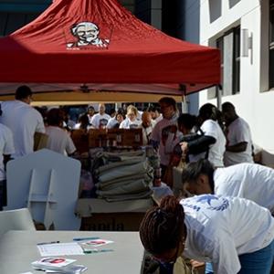 In observance of former president Nelson Mandela’s birthday July 18, KFC South Africa associates teamed up with volunteers from the World Food Programme to help feed hungry Johannesburg families.