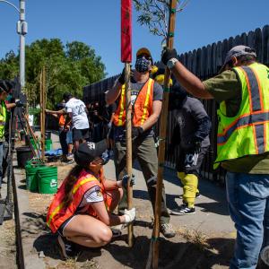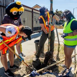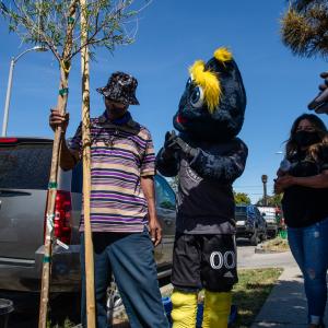 Together, LA Galaxy staff and supporters spent the afternoon planting trees alongside LA Galaxy and MLS legend Cobi Jones and team mascot Cozmo. Volunteers planted trees in residential neighborhoods with the design of providing shade for residents and neighbors.