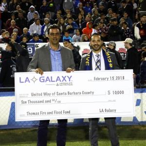 During halftime of the match, the LA Galaxy presented a check to United Way of Santa Barbara for the United Way Thomas Fire & Flood Fund.
